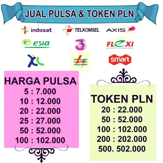 Gambar untuk brosur pulsa all operator jual spanduk banner konter pulsa ukuran . Download spanduk jual pulsa elektrik all operator ppob spanduk loket pembayaran listrik contoh desain. Jual pulsa online all operator token listrik pln, beli paket data simpati,. Download now contoh iklan jual pulsa elektrik all operator morena pulsa. Kumpulan gambar tentang gambar agen pulsa, klik untuk melihat koleksi gambar.